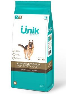 Ünik Alimento Premium para perro adulto talla mediana y grande cubre las reales necesidades del perro adulto, manteniendo su peso ideal.